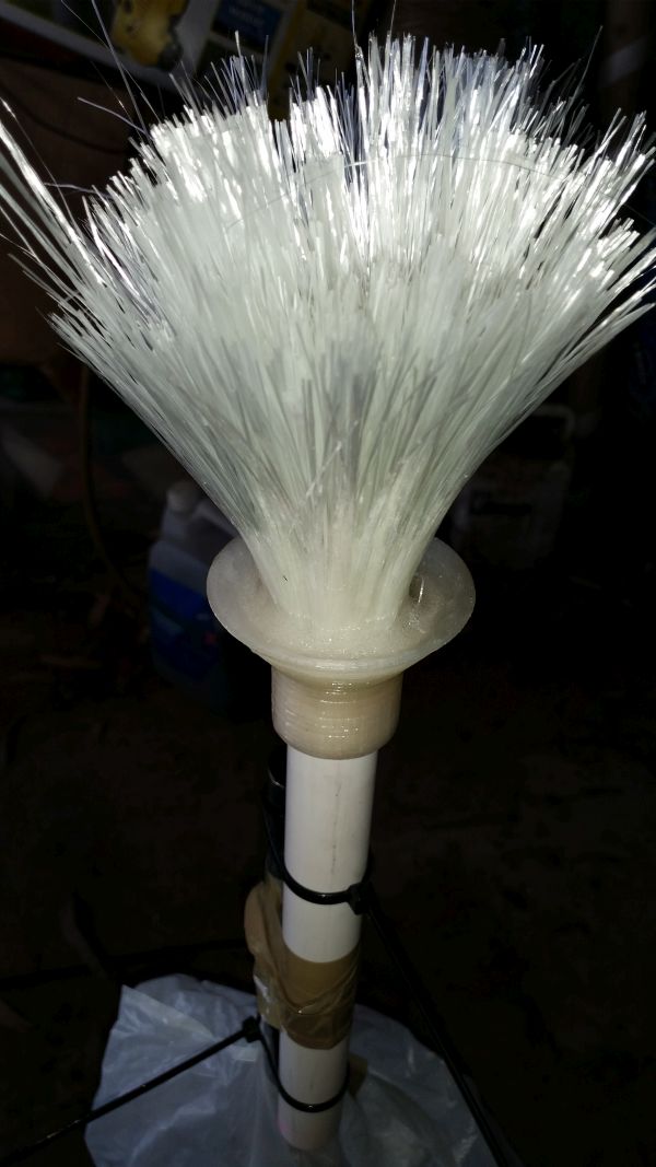 Here you can see the funnel thing I designed to feed the fibre and epoxy into the tube.